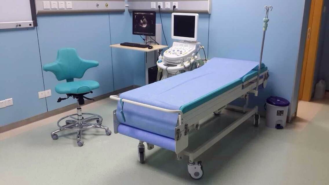 圖三:圖依次為電動(dòng)診療床、醫(yī)師專(zhuān)用椅(PC)、超聲工作站平臺(tái)(HP)